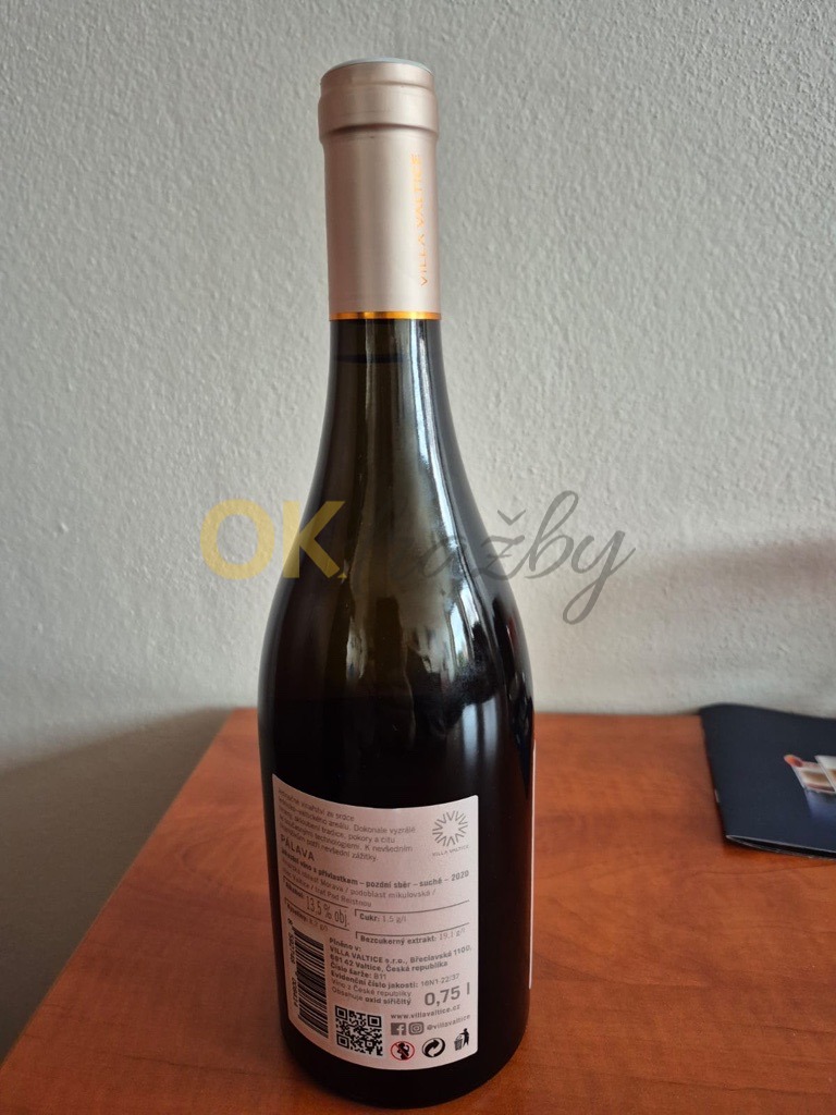 372 ks lahví vína Pálava, pozdní sběr, rok 2020, villa Valtice